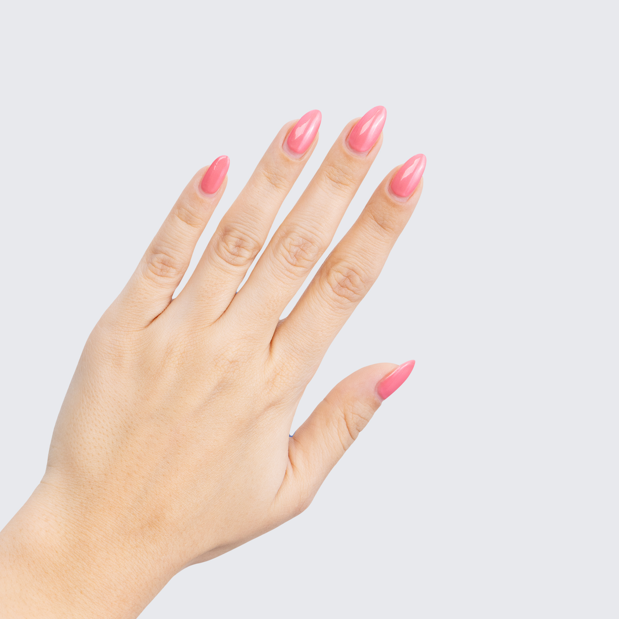 Coral pink. Light. Pearl finish. 1 coat sheer, 2+ coats opaque. Warm undertone.